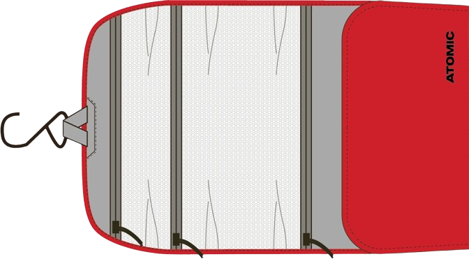 Atomic Wash Bag allows you to safely transport your cosmetics and toiletries. To reduce waste, the washbag is made from leftover fabrics from the manufacturing process of our collections. It is equipped with a secure hook for hanging the open toiletry bag with its contents visible, and separate zippered compartments for easy organization. The sturdy snap closure ensures that the cosmetic bag won't open while traveling. It is designed so that its volume can be reduced if necessary.
