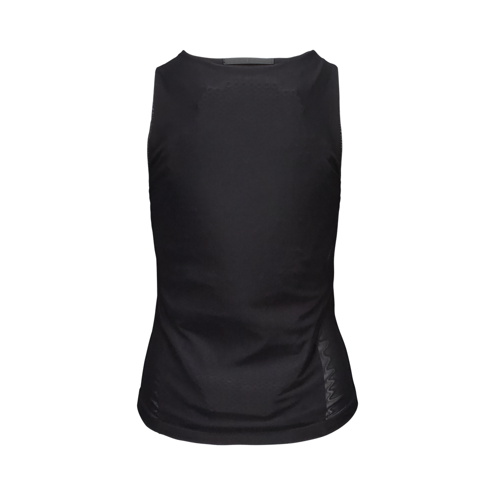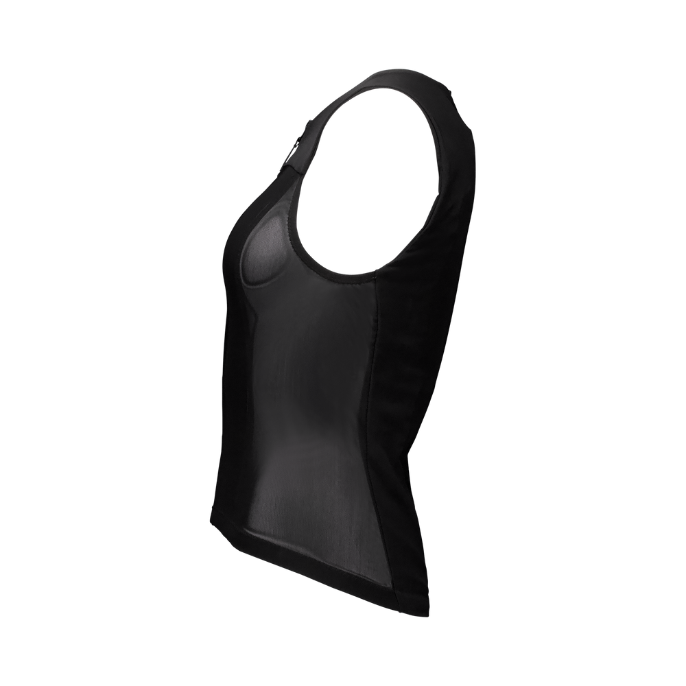 It meets EN 1621-2 Level 2 standards and uses cylindrical VPD columns molded on a durable textile base. These maintain flexibility even in extreme cold, absorbing and dispersing impact forces with high efficiency. The vest is made from 4-way stretch recycled mesh for enhanced breathability and moisture control.