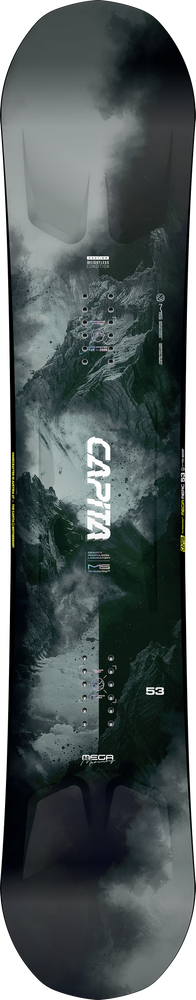 The RESORT V2 camber profile with raised tips and wide camber offers an incredible combination of control and playfulness off-piste. The Mega Merc is boosted by the fastest sintered base from the CAPITA MFG factory – the MEGADRIVE™ XT BASE, additionally supported by the MOONSHOT OMNI-TUNE™ structure. This structure is responsible for water drainage and further speeds up the board. The base is thicker than the previous version for increased durability. All of this results in a cosmic effect of one of the fastest boards on the slope, which holds an edge perfectly and transfers energy effectively.