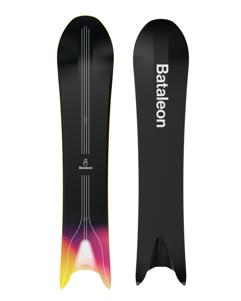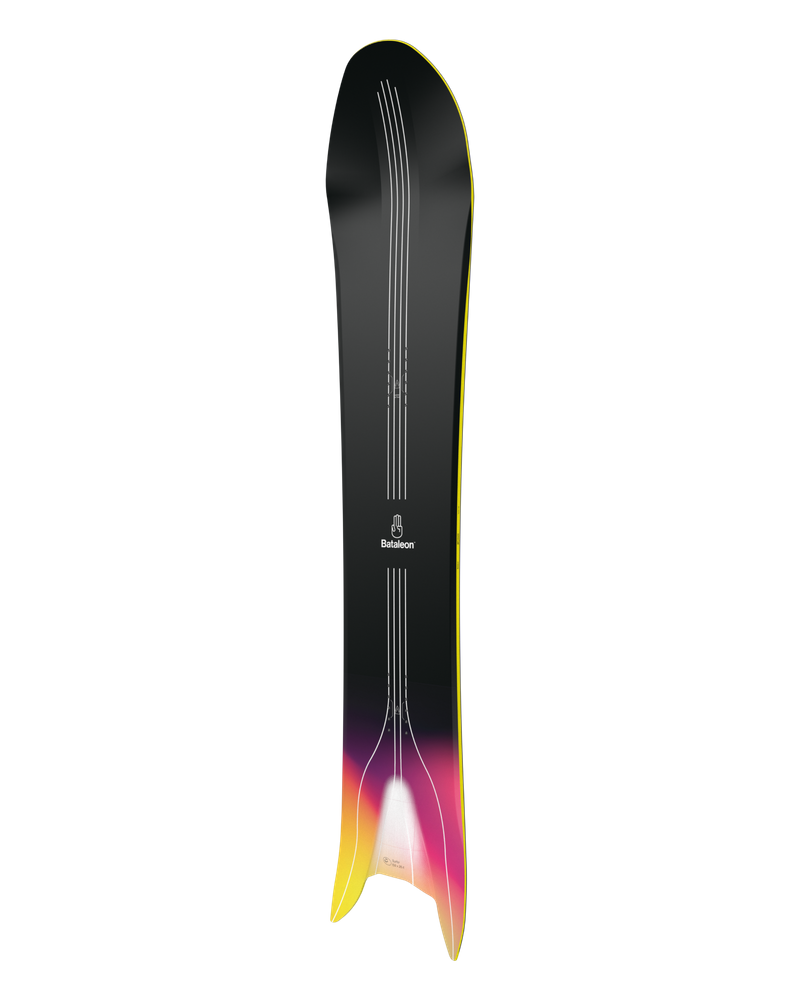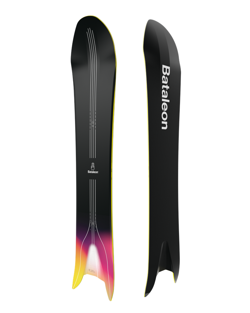 The Surfer has been turning heads since its launch and continues to set the bar for progressive 3D shapes. The wide, hull-like nose generates unparalleled lift – plowing through deep snow, surfing through slush and mowing over bumps. An aggressive side-cut, combined with the extreme swallow, maximizes edge grip to enable you to get your palms down on the hard pack while naturally sinking the tail in pow.