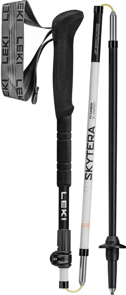 - LEKI Skytera FX Carbon SL Compact trekking pole. Ultralight carbon build, ergonomic grip, compact folding, and trail-running-inspired strap – perfect for fast & light hiking in the mountains.